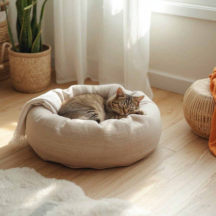 Pawboxx™ Cozy Beige Pawprint Cat Cubby – Soft Fleece Hideout